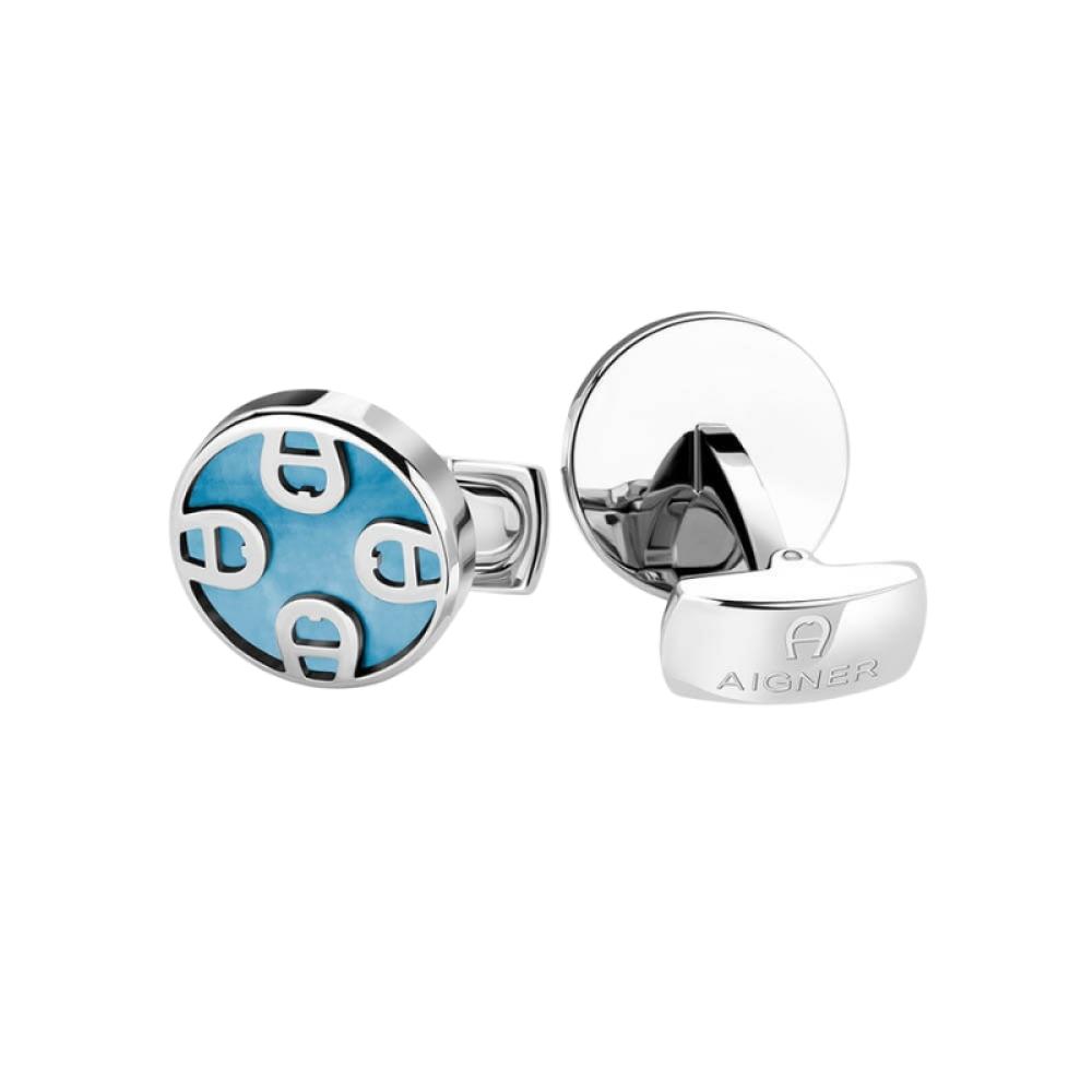 أزرار أكمام Aigner الفاخرة بلون أزرق وفضي