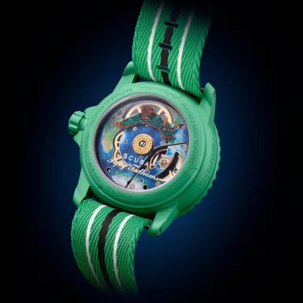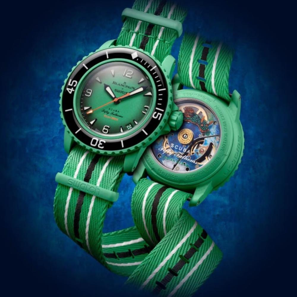 اسم الساعة: ساعة Blancpain X Swatch Indian Ocean - تصميم مميز بلون أخضر نابض بالحياة