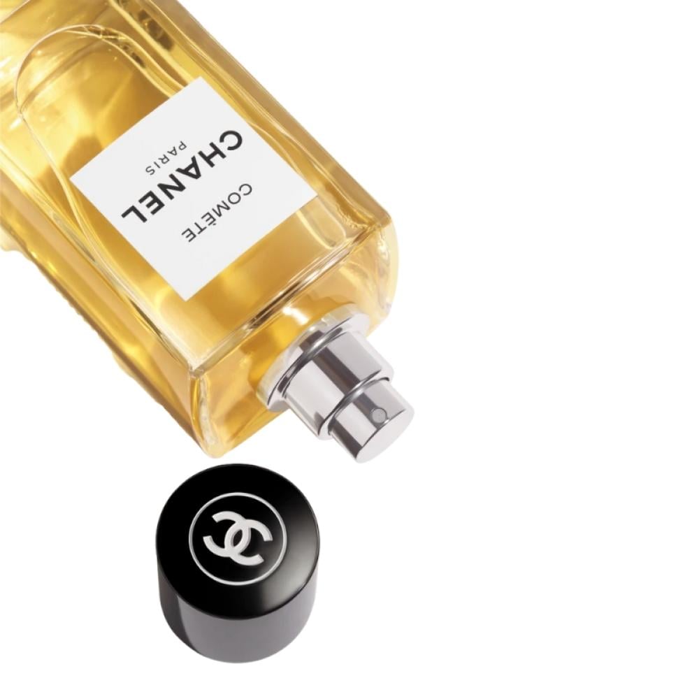 عطر Chanel Comète Eau de Parfum من مجموعة Les Exclusifs de Chanel مستوحى من مجموعة المجوهرات الشهيرة Bijoux de Diamants التي قدمتها غابرييل شانيل عام 1932. يرمز العطر إلى قلادة "Comète" الأسطورية التي يتألق نجمها الساقط في تجويف الرقبة كرمز للرابطة الحسية والحميمية بين الأناقة والعطر.