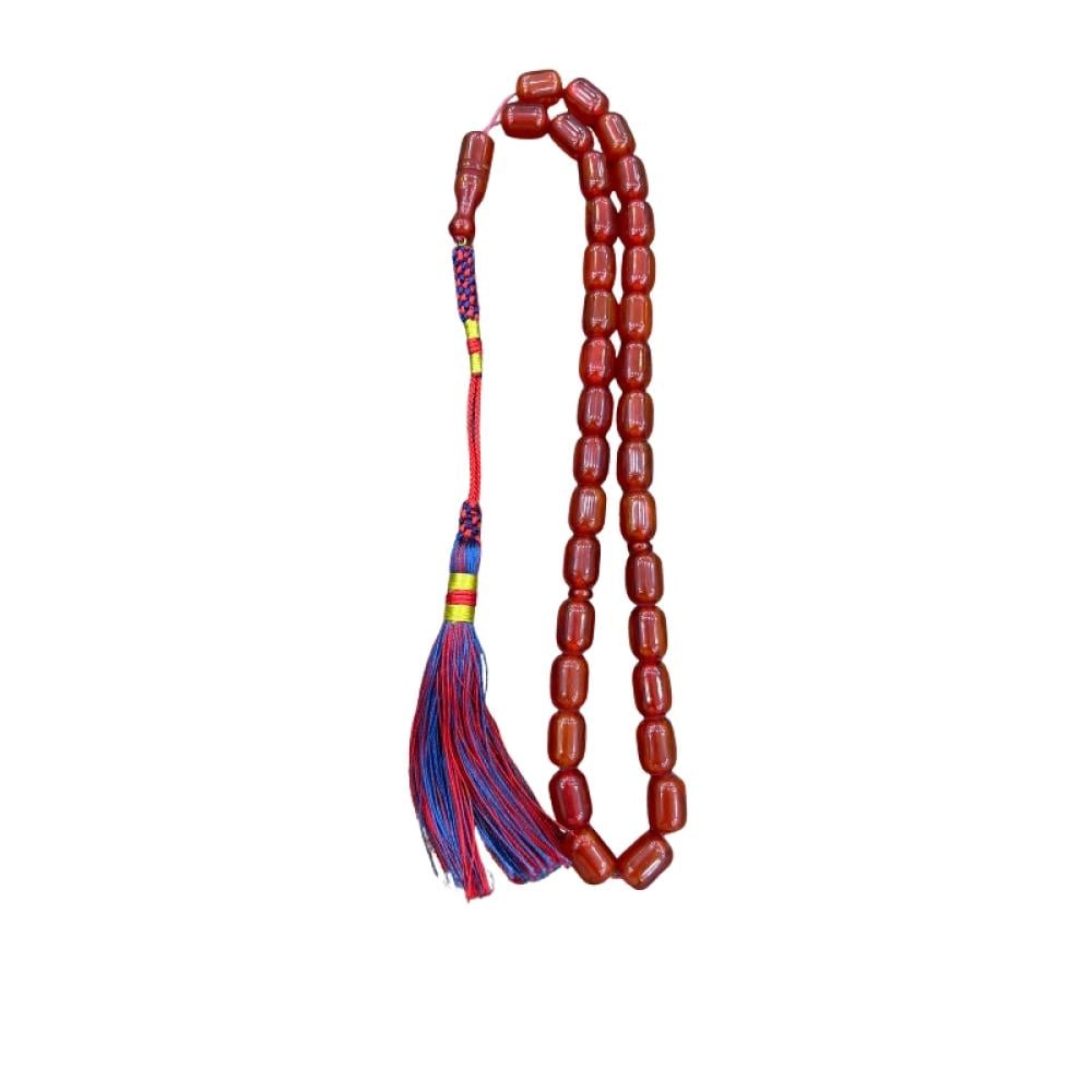 سبحة فاتوران تركي بلون أحمر غامق – 33 خرزة أسطوانية مع كركوشة متعددة الألوان