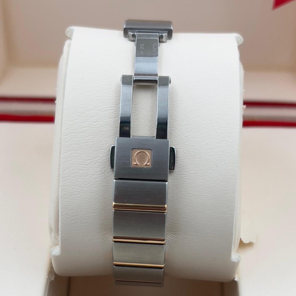 ساعة أوميغا كونستليشن النسائية ذات المقاس 24 ملم تُجسد الأناقة والرقي في تصميم فاخر مستوحى من التاريخ العريق للدار السويسرية. تتميز بهيكل يجمع بين الفولاذ والذهب الوردي، مع إطار مرقّم بالأرقام الرومانية الكلاسيكية، وميناء أبيض لؤلؤي ينبض بالأنوثة مزين بـ 12 مؤشّرًا مرصعًا بالألماس البراق.