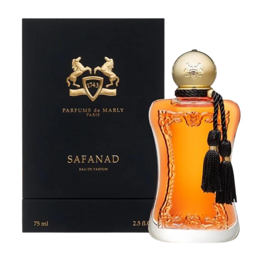 عطر Safanad من Parfums de Marly هو عطر دافئ ومخملي، مستوحى من أشعة الشمس. يبدأ بنفحات من البرتقال، الكمثرى، وزيت البتيتغرين، متبوعًا بقلب من الياسمين السامباك المطلق، الإيلنغ، وزهرة البرتقال، ليطور رائحة جذابة. تتعمق القاعدة مع العنبر، الفانيليا، وخشب الصندل، لتخلق عطرًا خشبيًا دافئًا ينسج أثرًا من الراحة.