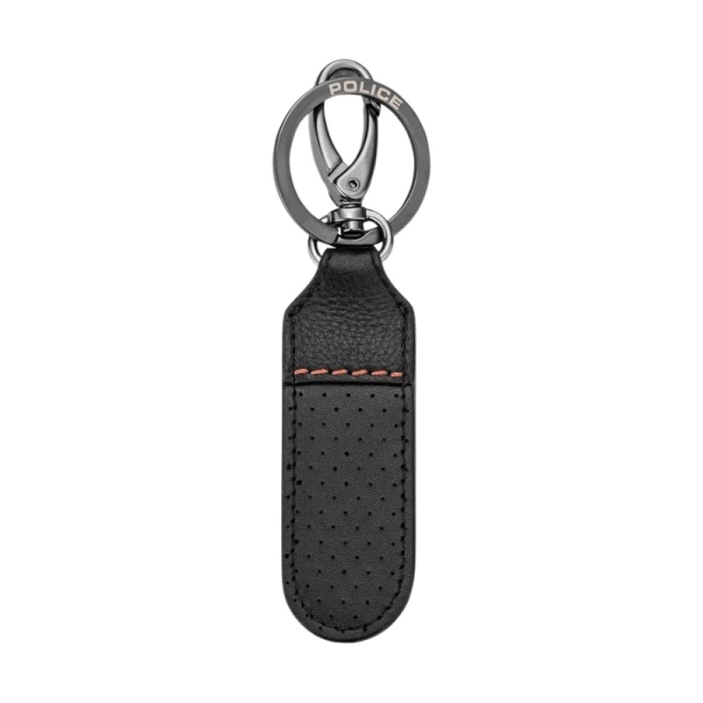 ميدالية مفاتيح بوليس جلدية سوداء برمز العلامة التجارية - تصميم أنيق