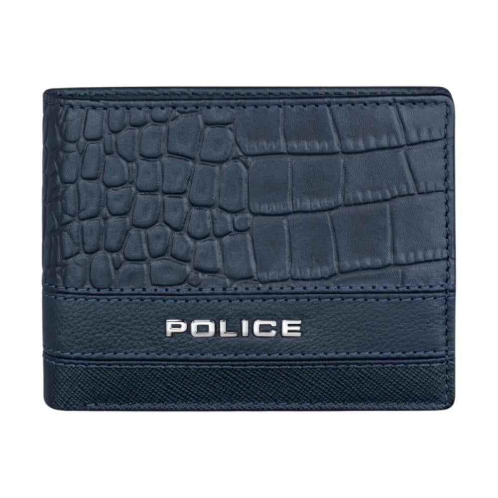 محفظة بوليس رجالية بلون أزرق بنقشة جلد التمساح - تصميم فاخر بسعة كبيرة