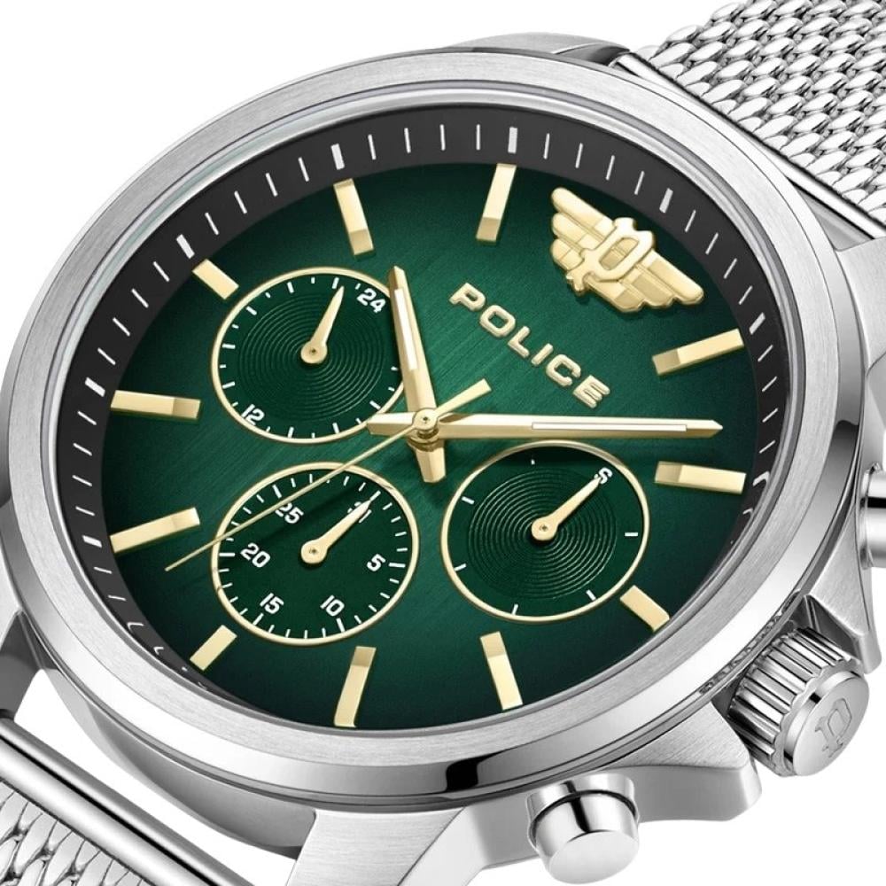 ساعة بوليس كرونوغراف رجالية بميناء أخضر وسوار شبكي PEWJK0006303