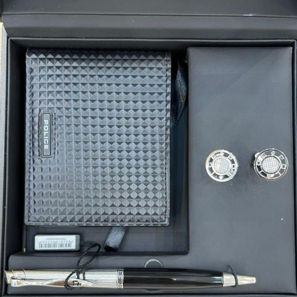 مجموعة هدايا Police الفاخرة - محفظة، أزرار أكمام، وقلم