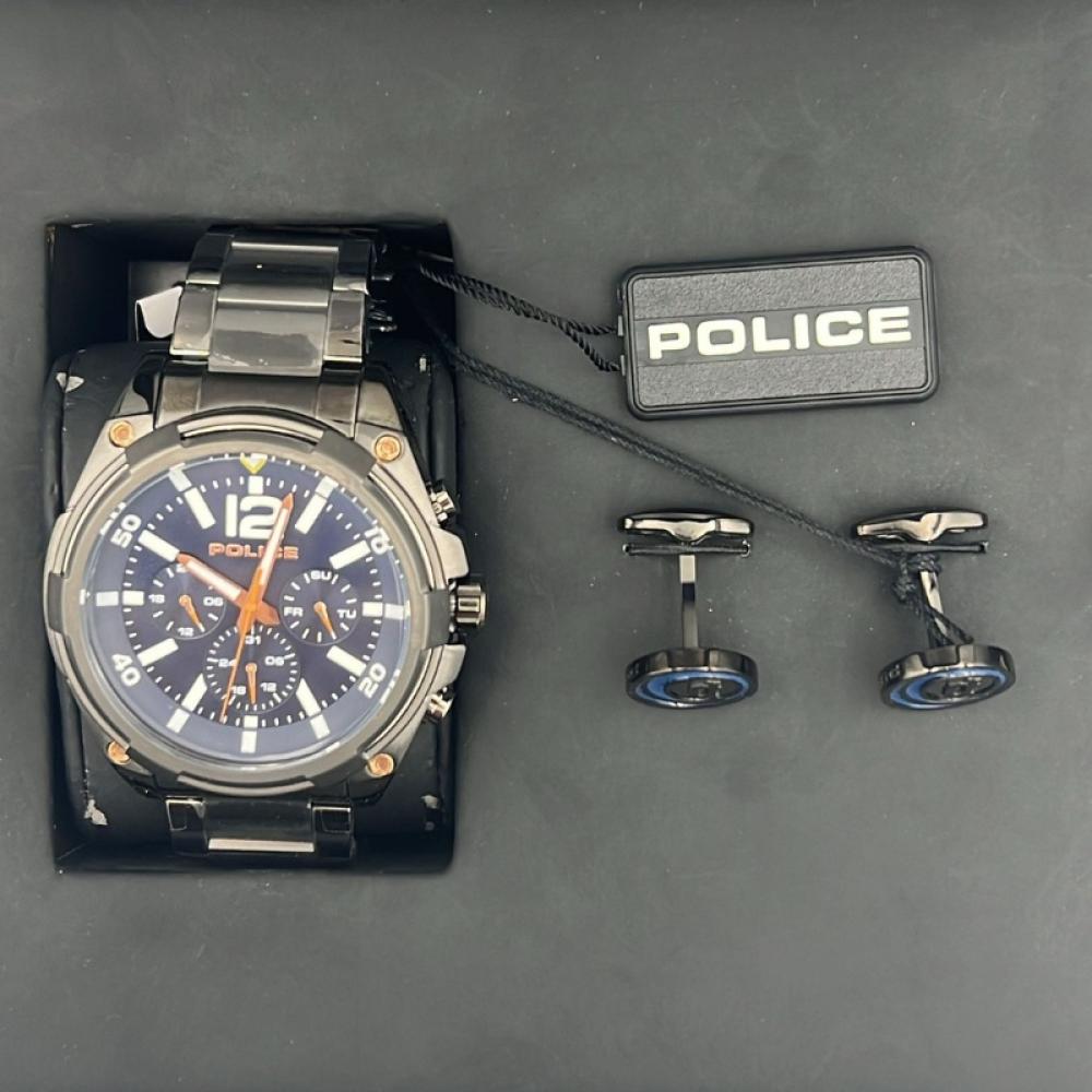 مجموعة هدايا بوليس (Police Gift Set) - ساعة وأزرار أكمام بتصميم عصري
