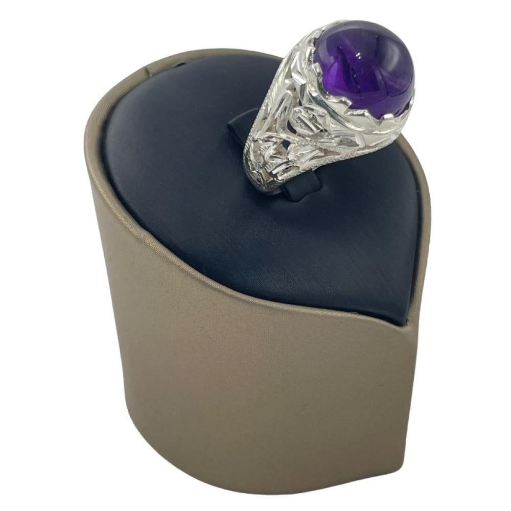 خاتم جمشت فضي بتصميم فاخر – لون بنفسجي عميق