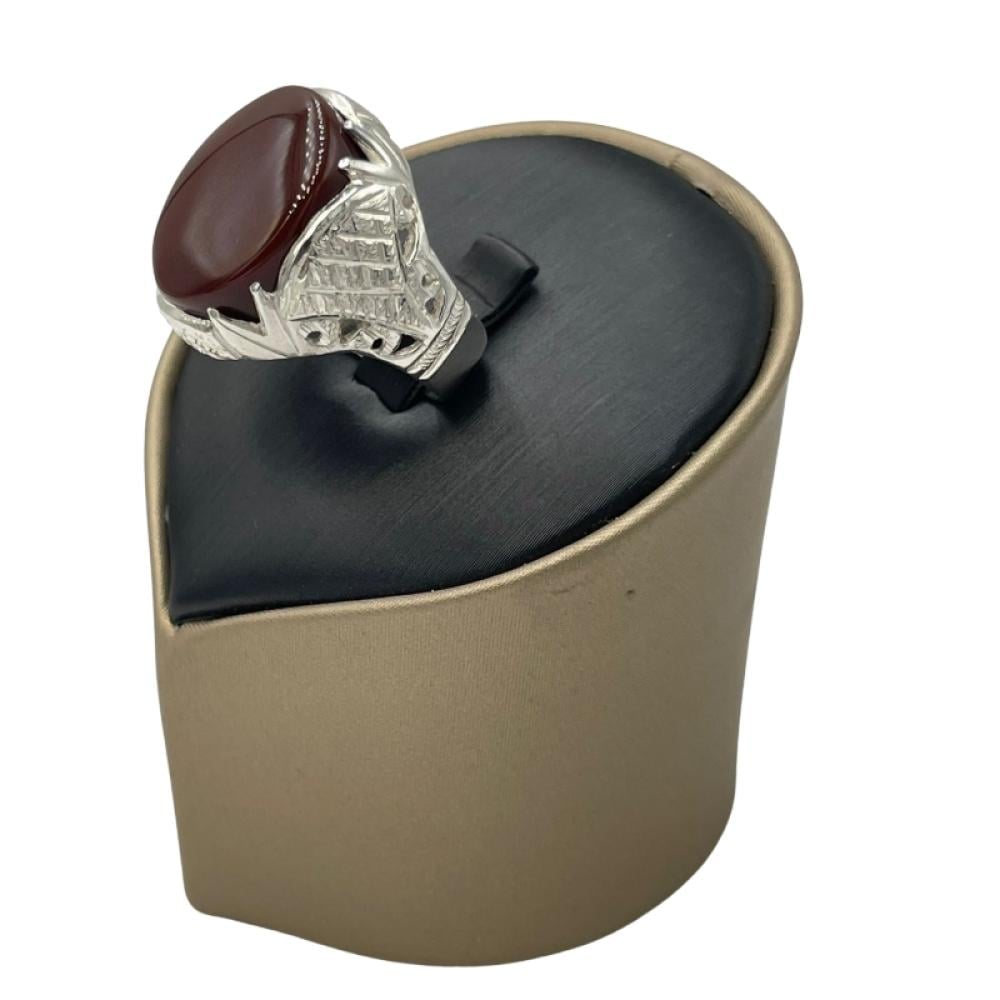 - عقيق يماني طبيعي: بلون خمري غني يمنح الخاتم جاذبية فاخرة.