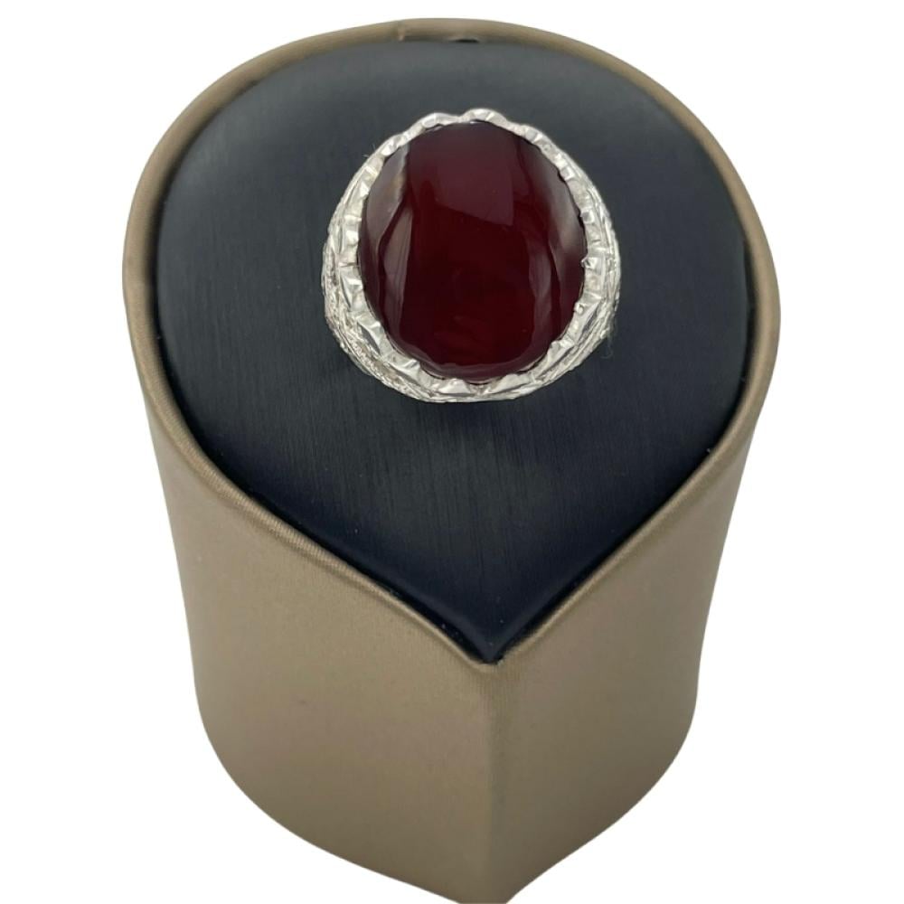 خاتم فضة رجالي صياغة يدوية بحجر عقيق يماني كبدي طبيعي