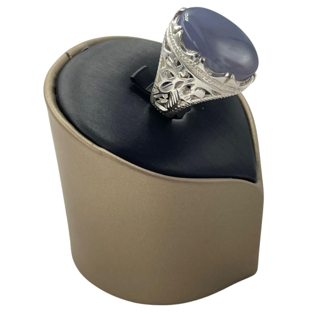 خاتم عقيق يماني فضي بتصميم فاخر – لون سماوي