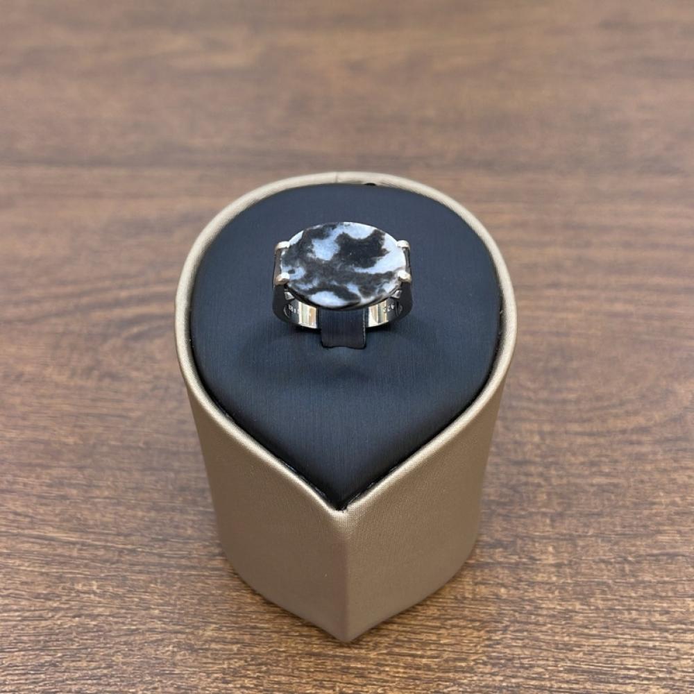 - الحجر: حجر رخامي أسود بألوان متداخلة تعزز من جمال الخاتم.