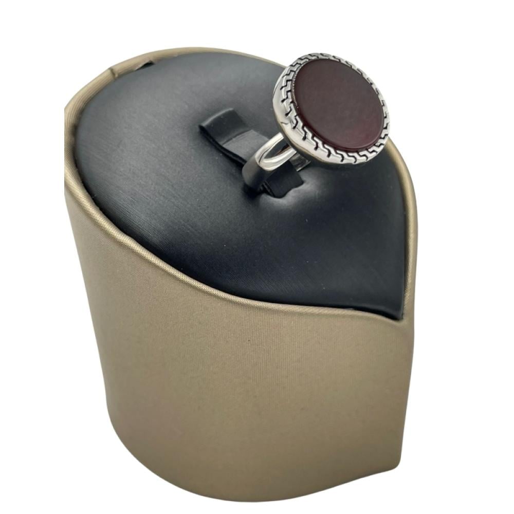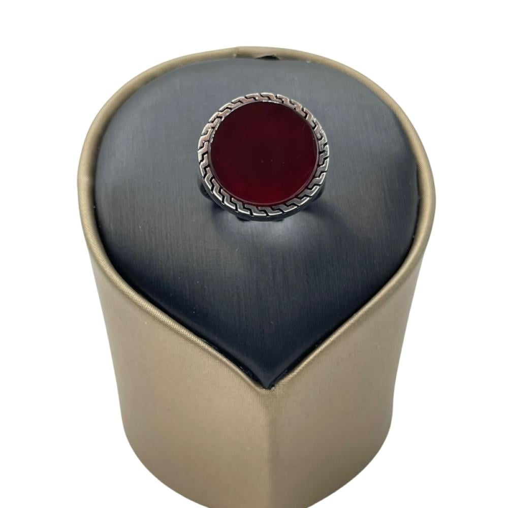 خاتم فضة رجالي مزخرف بحجر الأونيكس الأحمر.