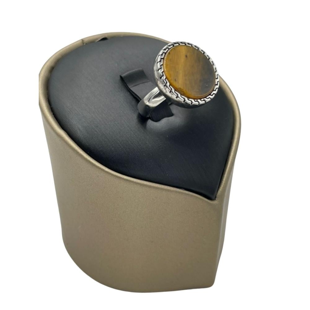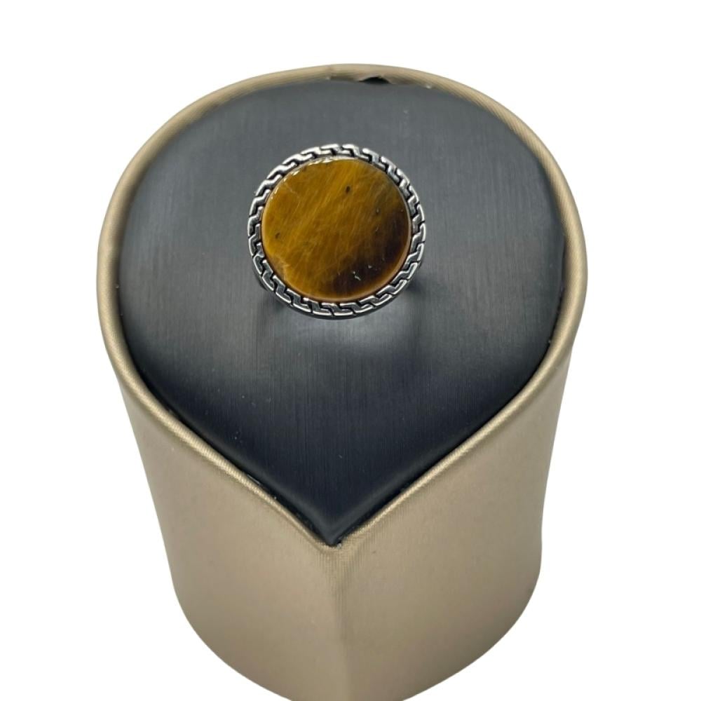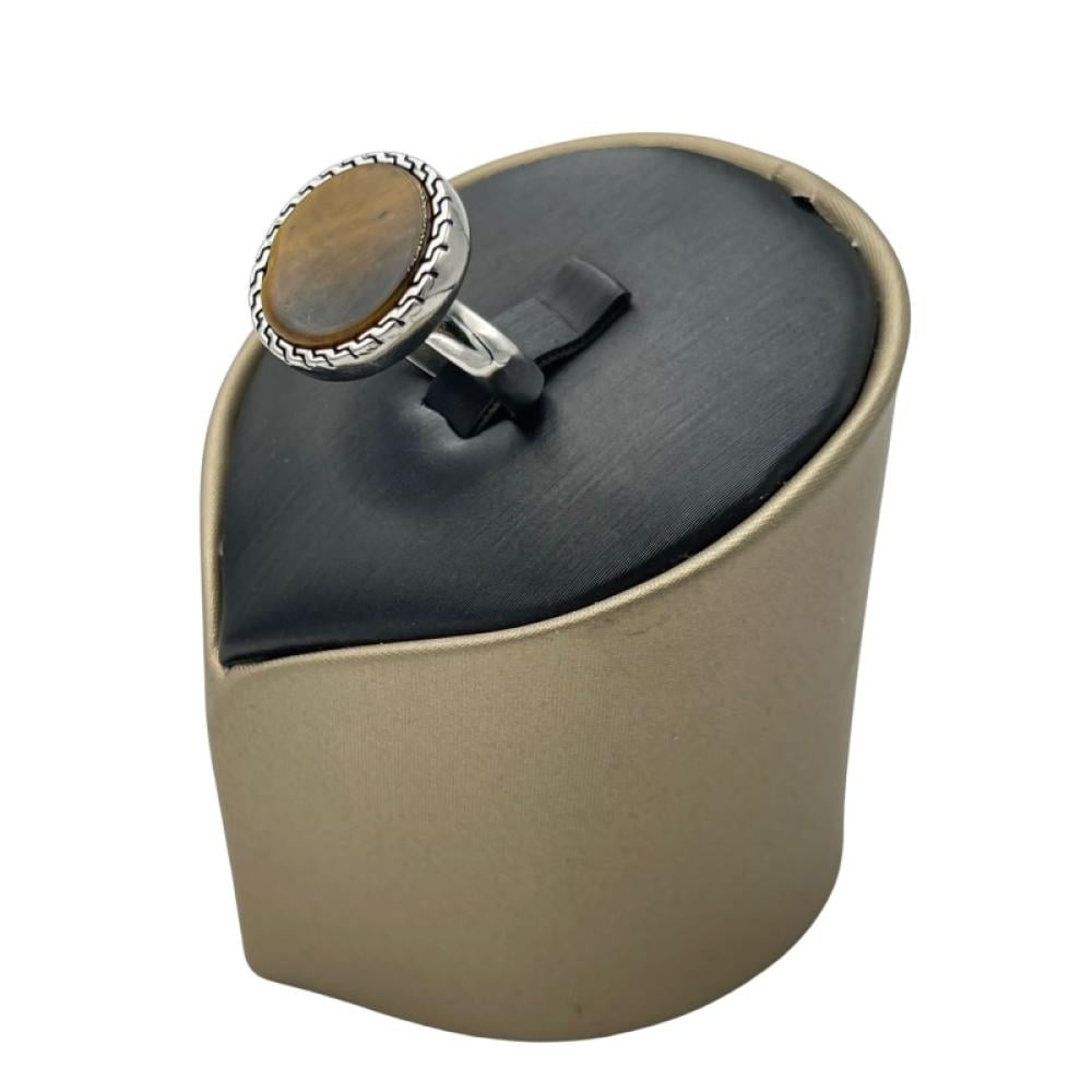 خاتم رجالي فاخر مصنوع بإتقان من الفضة الأصلية عيار 925، بتصميم يجمع بين الأصالة والفخامة. يتميز بحجر عين النمر الطبيعي الذي يرمز إلى القوة الداخلية والثقة، بينما تضيف النقوش المحيطة به طابعًا فنيًا مميزًا يمنح الخاتم جاذبية راقية تليق بالرجل العصري الباحث عن التميز.