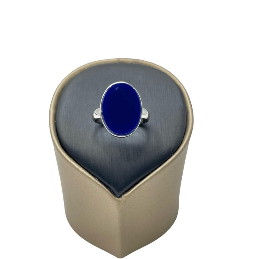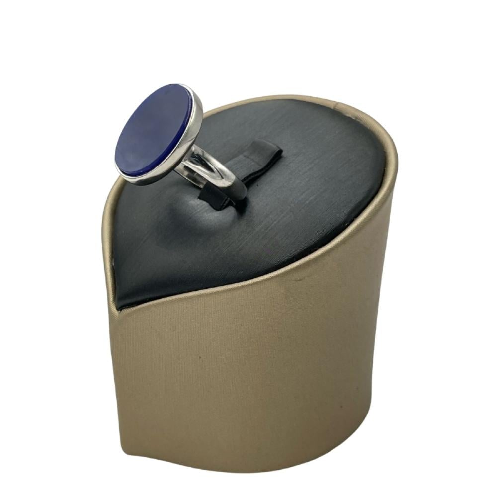 خاتم فضة ملكي عيار 925 متوج بحجر الأونكس الأزرق الغامق