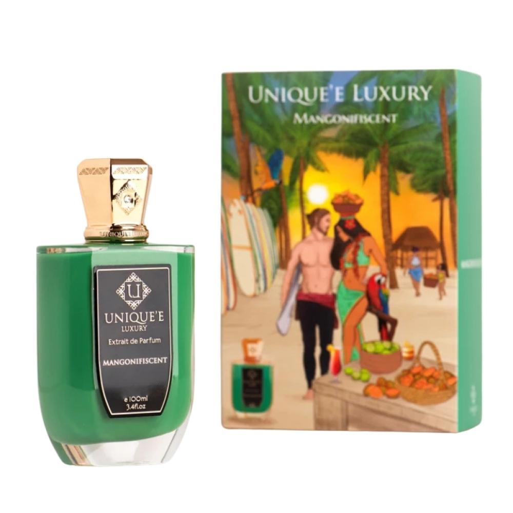 عطر Mangonifiscent من Unique'e Luxury هو تجسيد للفخامة والرقي، مستوحى من عبير المانجو الاستوائي اللذيذ. يتميز هذا العطر بمزيج متناغم من نفحات المانجو الطازجة مع البرغموت، يتبعه قلب زهري من الغرنوق والياسمين والورد، ويستقر على قاعدة دافئة من خشب الصندل، الباتشولي، الفانيليا، والعسل. هذا المزيج الفريد يضفي شعورًا بالانتعاش والحيوية، مما يجعله خيارًا مثاليًا للأيام الدافئة والمناسبات النهارية.