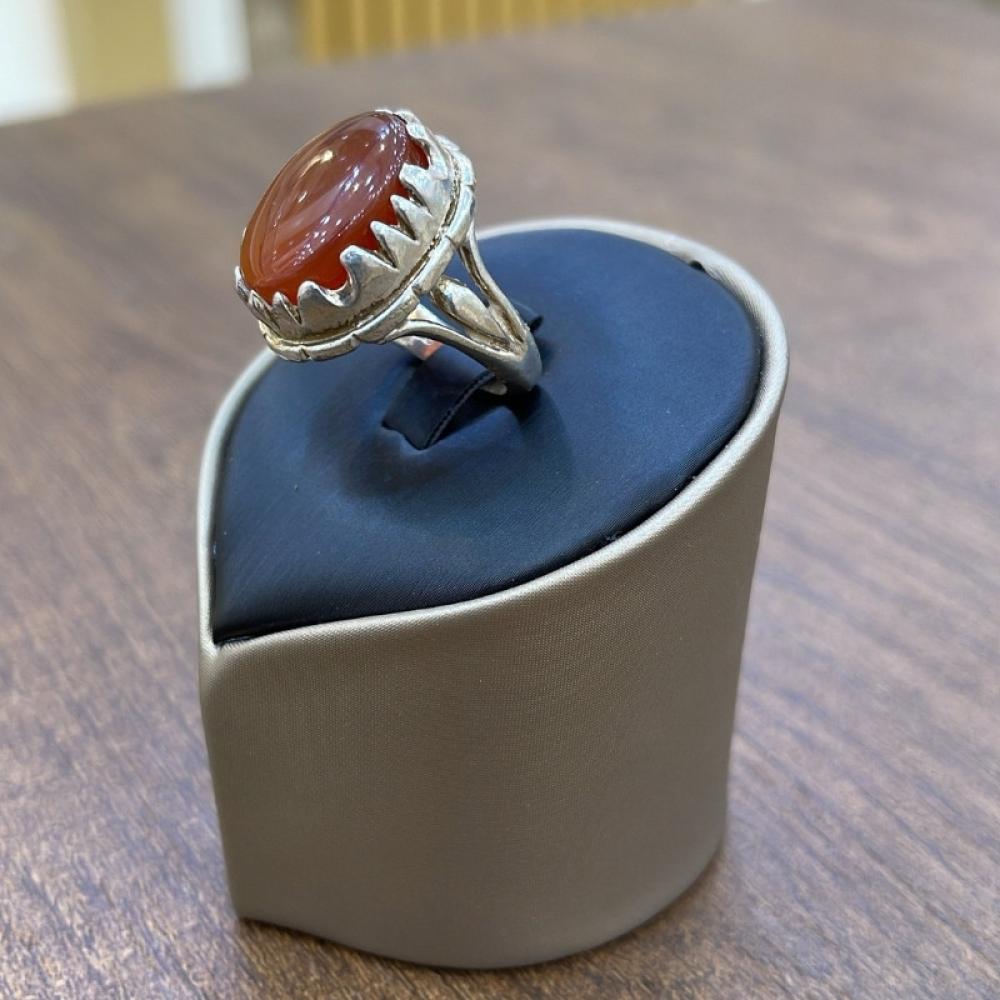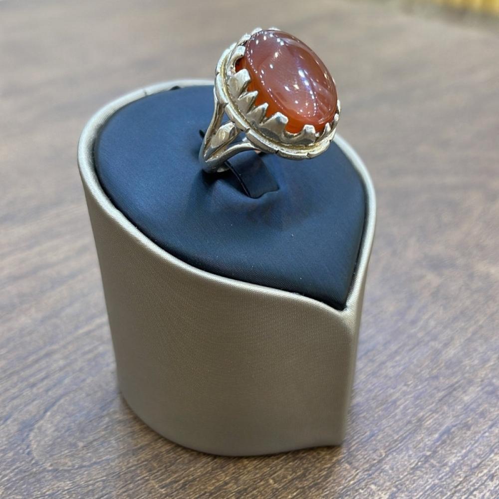 - حجر العقيق اليماني الطبيعي يبرز بلونه الأحمر الدافئ مع تدرجات برتقالية عميقة. الحجر مصقول بشكل مثالي ليعكس الضوء بزاويا مختلفة، مما يضفي على الخاتم بريقًا لافتًا وجاذبية استثنائية. هذا اللون الدافئ يضفي لمسة من الحيوية والطاقة، مما يجعل الخاتم قطعة فريدة من نوعها.