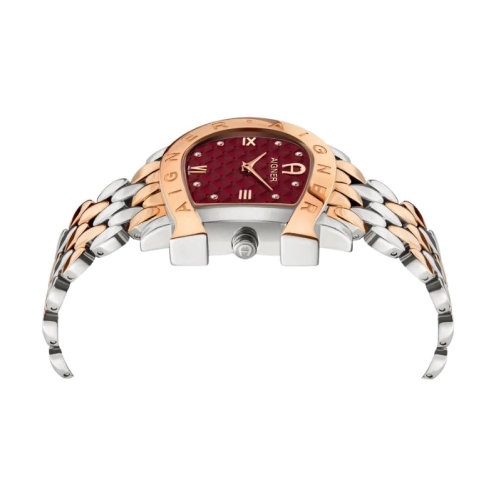 ساعة Aigner النسائية من تشكيلة ماسا تأتي بتصميم فريد يمزج بين الأناقة والفخامة. تتميز الساعة بمزيج من اللونين الفضي والذهبي الوردي مع ميناء مميز باللون الأحمر العميق، مما يضفي عليها لمسة من الرقي والجاذبية. القرص بحجم 36 مم مع سوار متين من الفولاذ المقاوم للصدأ، مما يجعل هذه الساعة الاختيار المثالي للنساء اللواتي يبحثن عن الأناقة والتميز في إطلالاتهن اليومية أو في المناسبات الخاصة.