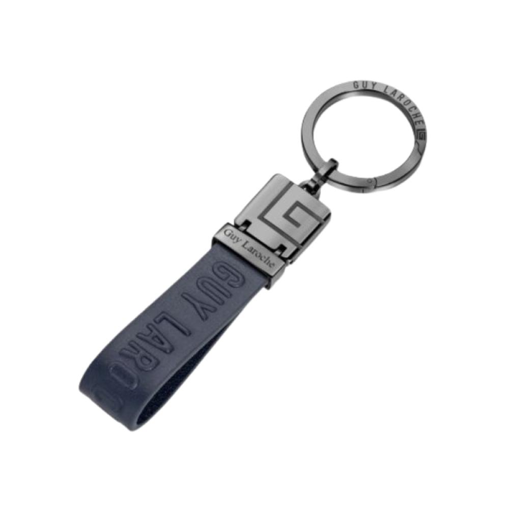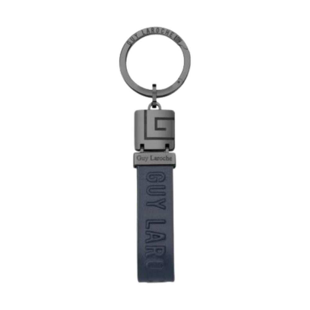 ميدالية مفاتيح جي لاروش جلدية رجالية بلون أزرق غامق