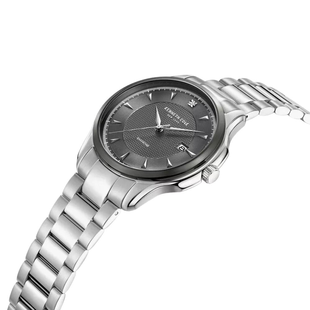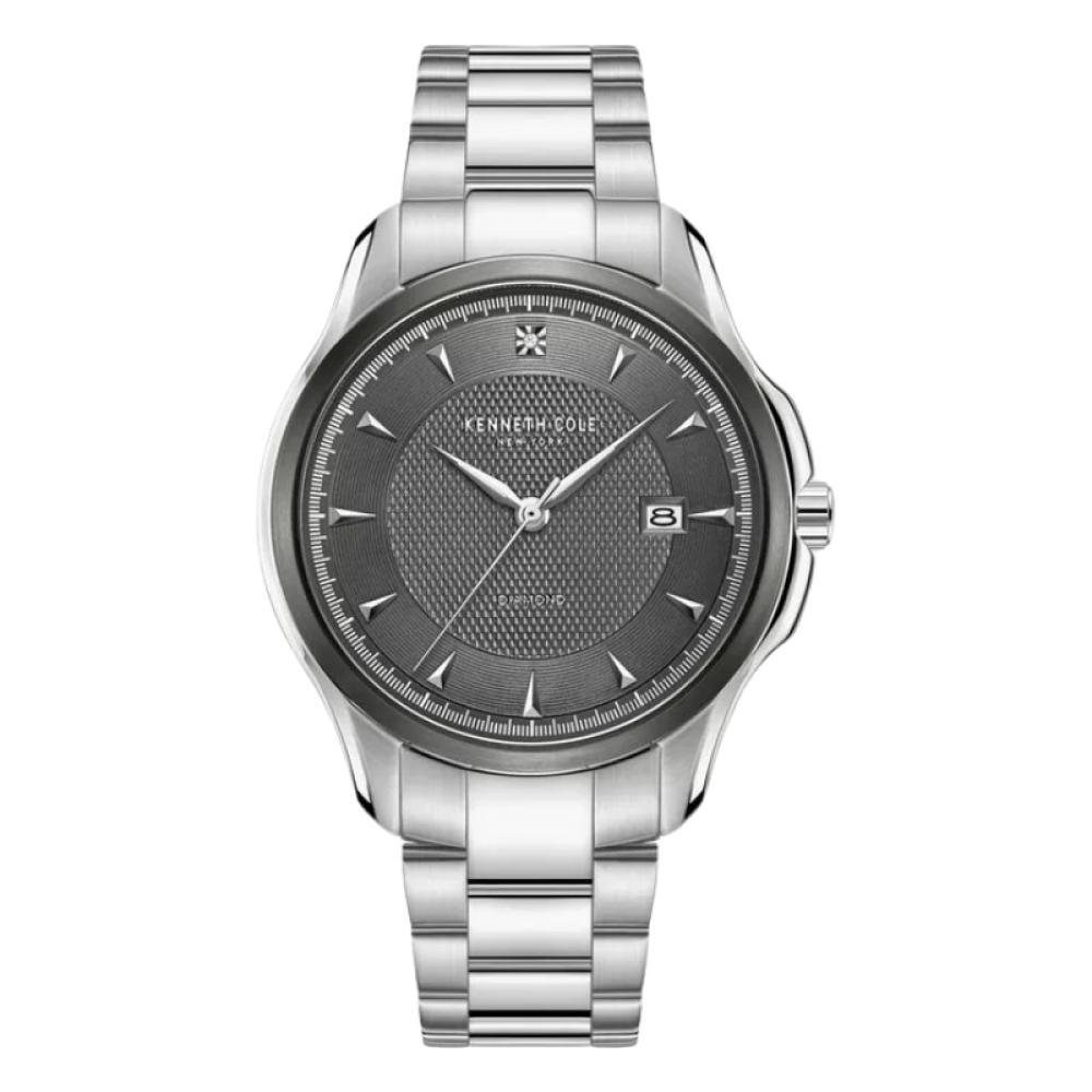 ساعة كينيث كول الرجالية - تصميم أنيق بميناء رمادي وفص ألماس