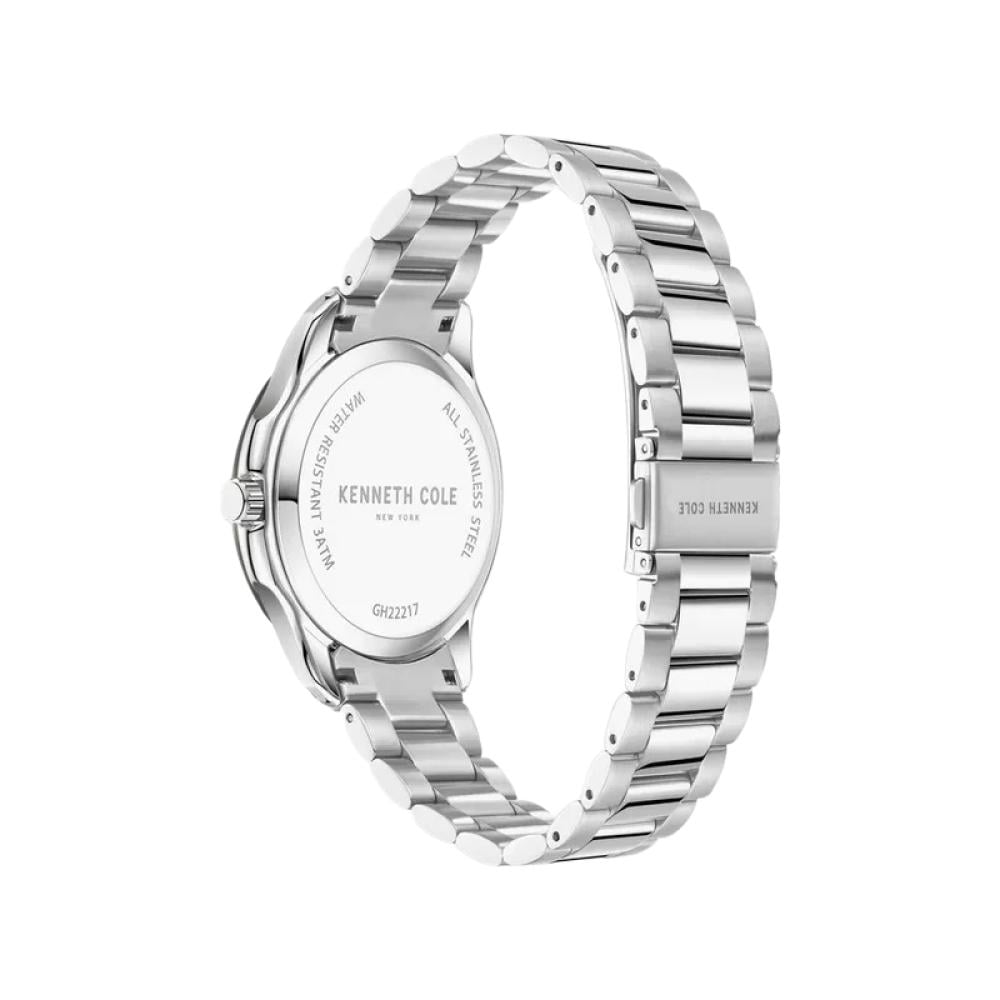 تجمع ساعة كينيث كول الرجالية بين الفخامة والحداثة بلمسات أنيقة تبرز طابعها الراقي. يتميز ميناء الساعة الرمادي بنمط هندسي فريد، مع فص ألماس لامع عند موضع الساعة 12، ما يمنحها لمسة فاخرة. كما تعكس العقارب والمؤشرات المعدنية تصميمًا راقيًا يسهل قراءة الوقت بوضوح. تأتي العلبة والسوار من الفولاذ المقاوم للصدأ، مما يضمن المتانة والأناقة في آن واحد، لتكون خيارًا مثاليًا للرجل العصري.