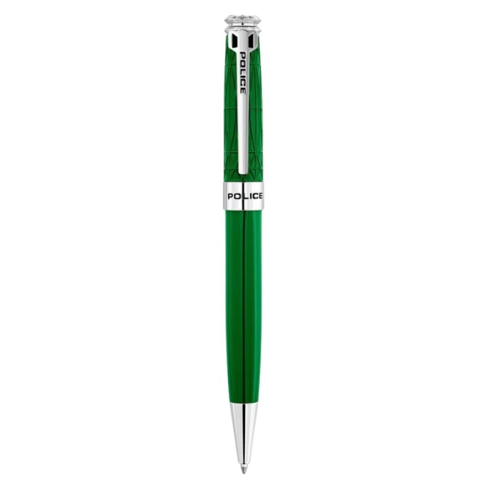 قلم بوليس الرجالي بتصميم فاخر يجمع بين الأناقة العصرية والتفاصيل الراقية. يتميز بجسم معدني متين باللون الأخضر مع لمسات فضية أنيقة، مما يجعله خيارًا مثاليًا لمحبي الفخامة والتميز.